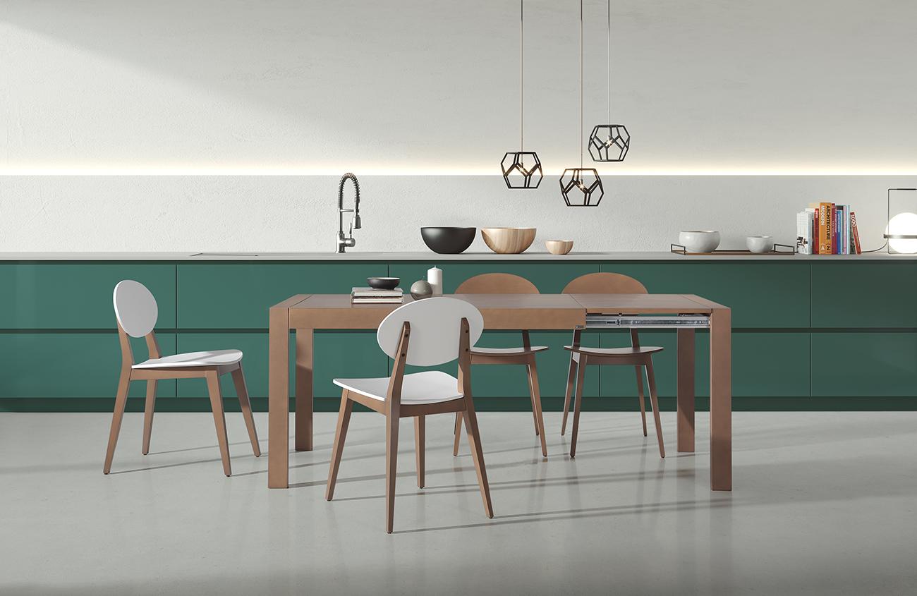 - Encimera y extensible: Chapa de haya o fresno, mismo acabado en ambos.