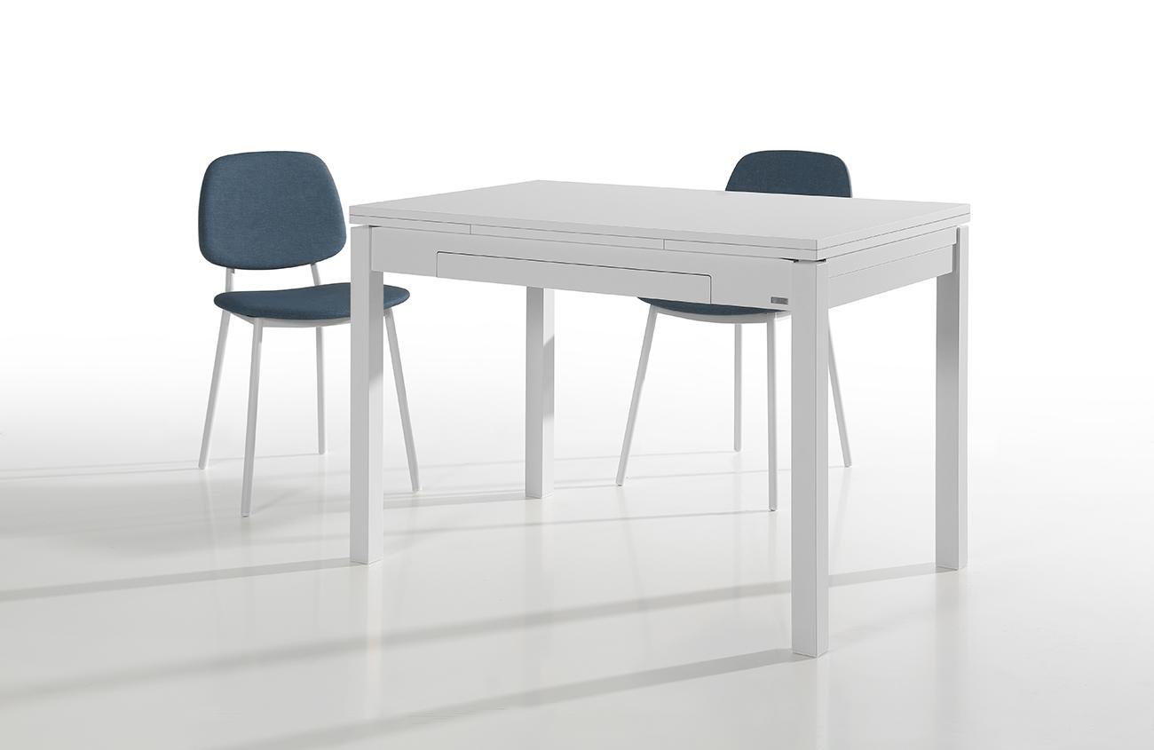 - Encimera, armazón, cajón y extensibles fabricados con laminado blanco o aluminio de alta densidad de 19 mm.