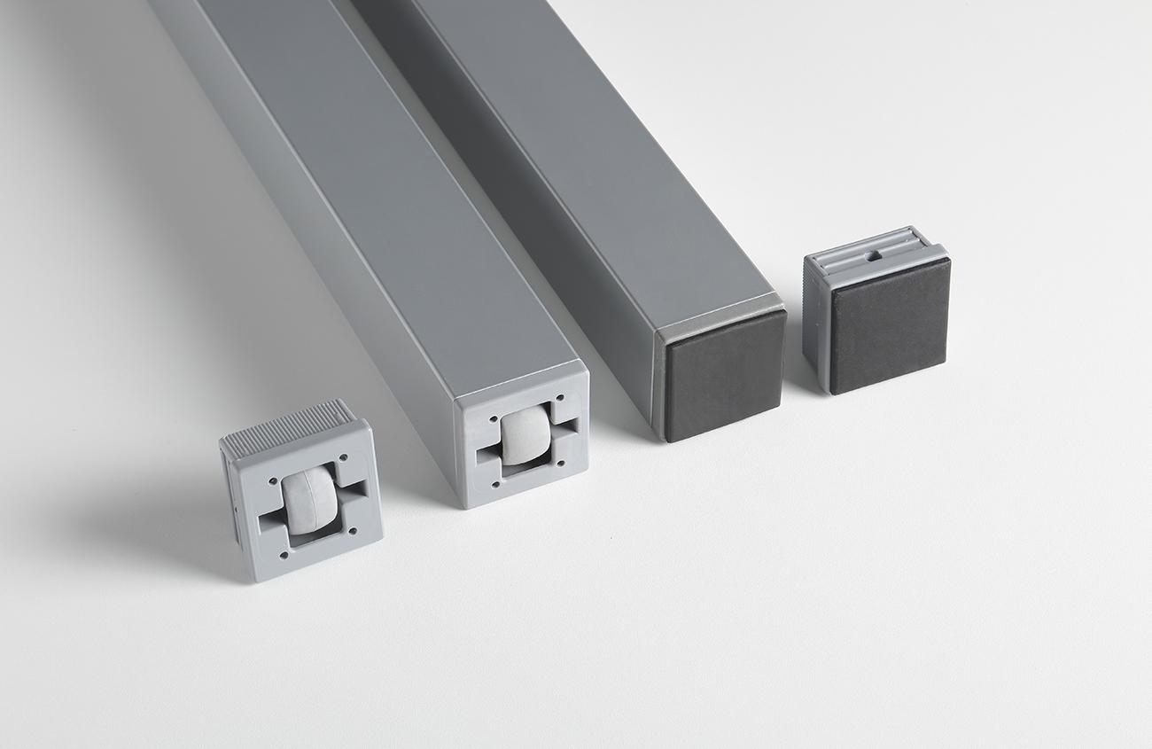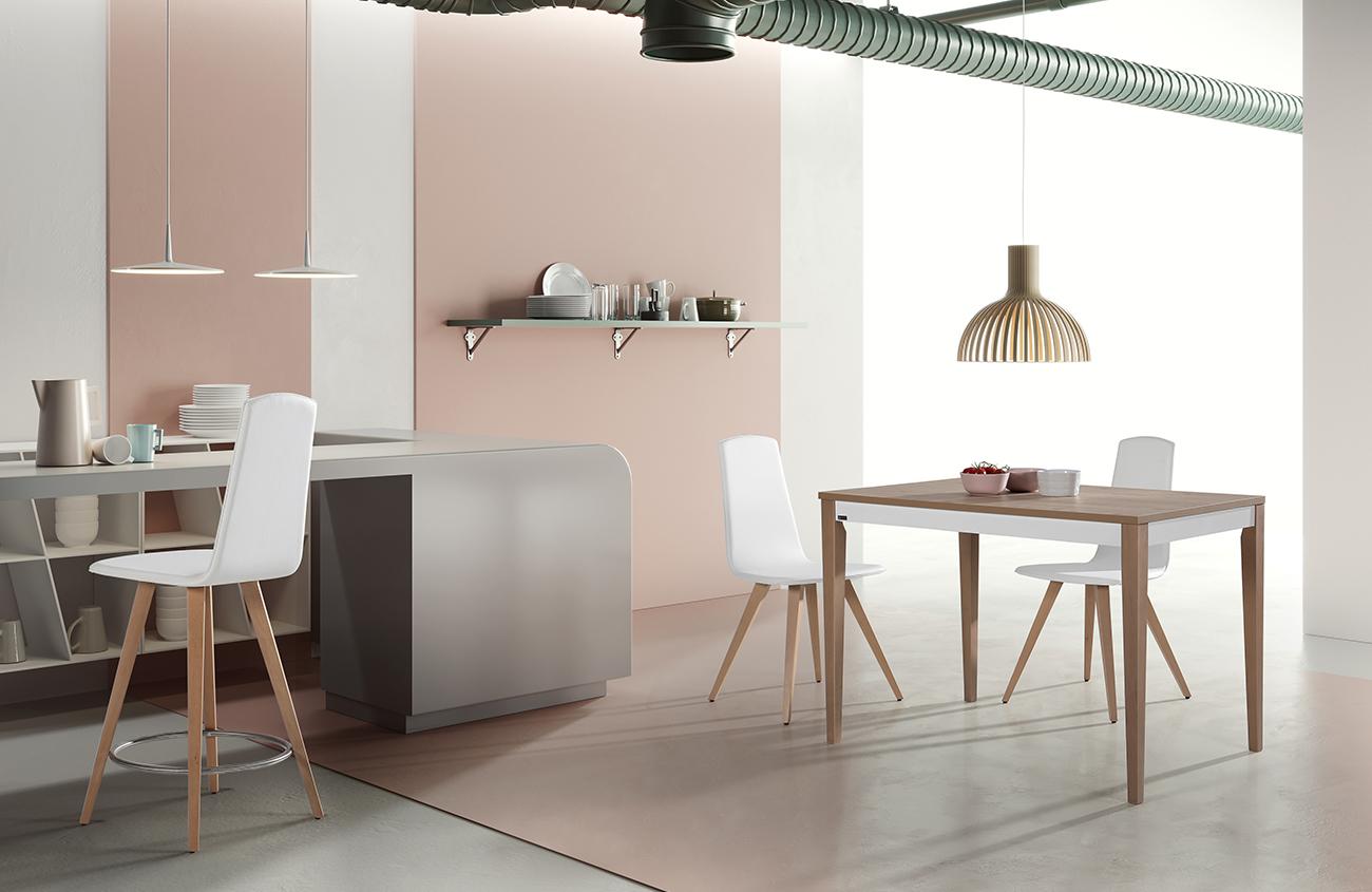 - Chasis y patas metálicas pintadas en epoxi, disponibles en plata o blanco.