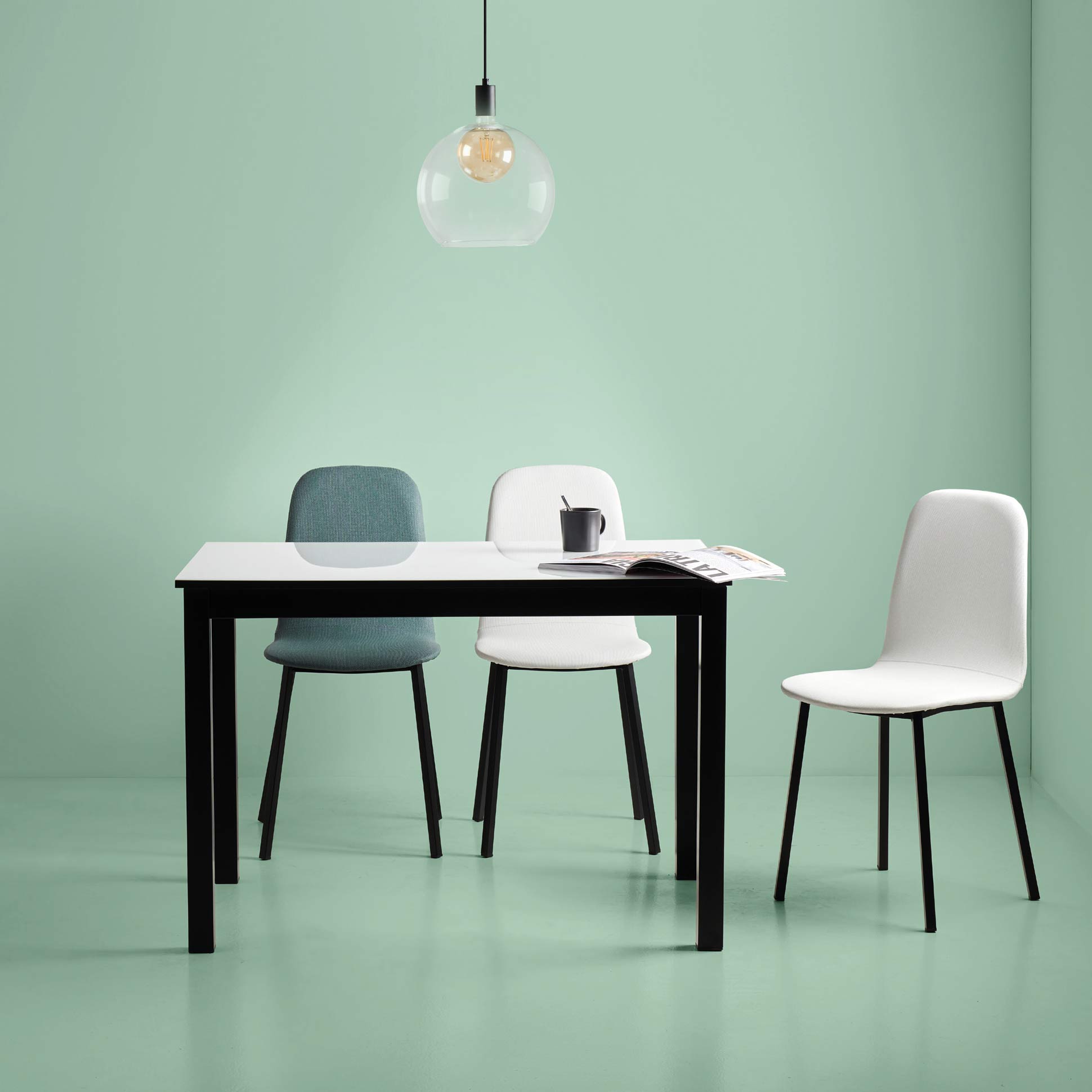 La silla cuenta con un diseño refinado en el que la forma delicada de su silueta, el tacto de su tapizado y el confort en su sentada, hacen de ella la elección perfecta para los amantes de la elegancia. Este modelo es una de las piezas más versátiles que tenemos, apta para cocina, salón o contract, ofrece un amplio abanico de posibilidades ya que su estructura metálica está disponible en 3 colores, y la carcasa tapizada que conforma asiento y respaldo en todos nuestros tapizados especiales.