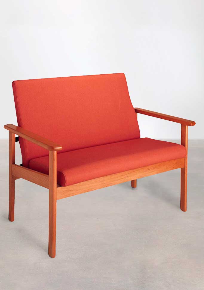 Sofá de dos plazas fabricado en madera de haya y respaldo bajo